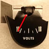 The M6566VIO is an 'inductive' type Amp meter from an early 65 Mustang converted to read volts. Instead of the original ammeter face it shows volts to indicate the higher voltages of the newer charging systems.