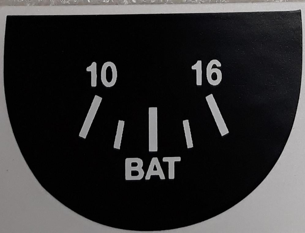 The M7123VO is the Amp meter from a 71, 72 or 73 Mustang converted to read volts. It has a new overlay that is a generic version of the original amp face, but has been modified to indicate voltage.